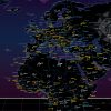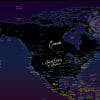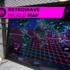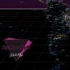 Cette carte artistique est une mappemonde transposée dans un univers Retrowave.
